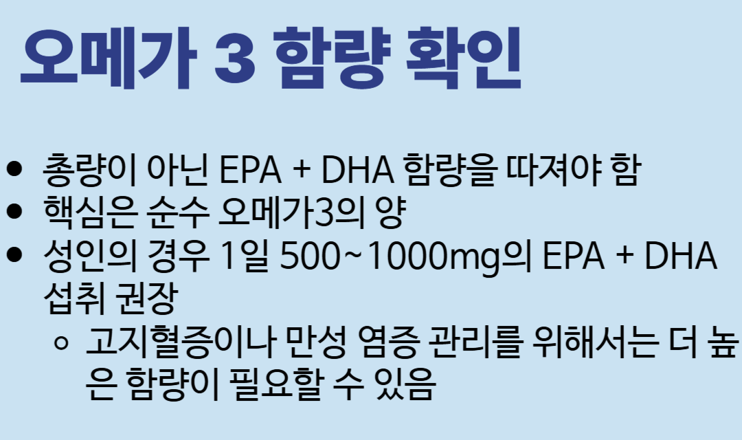 - 총량이 아닌 EPA + DHA 함량을 따져야 합니다.