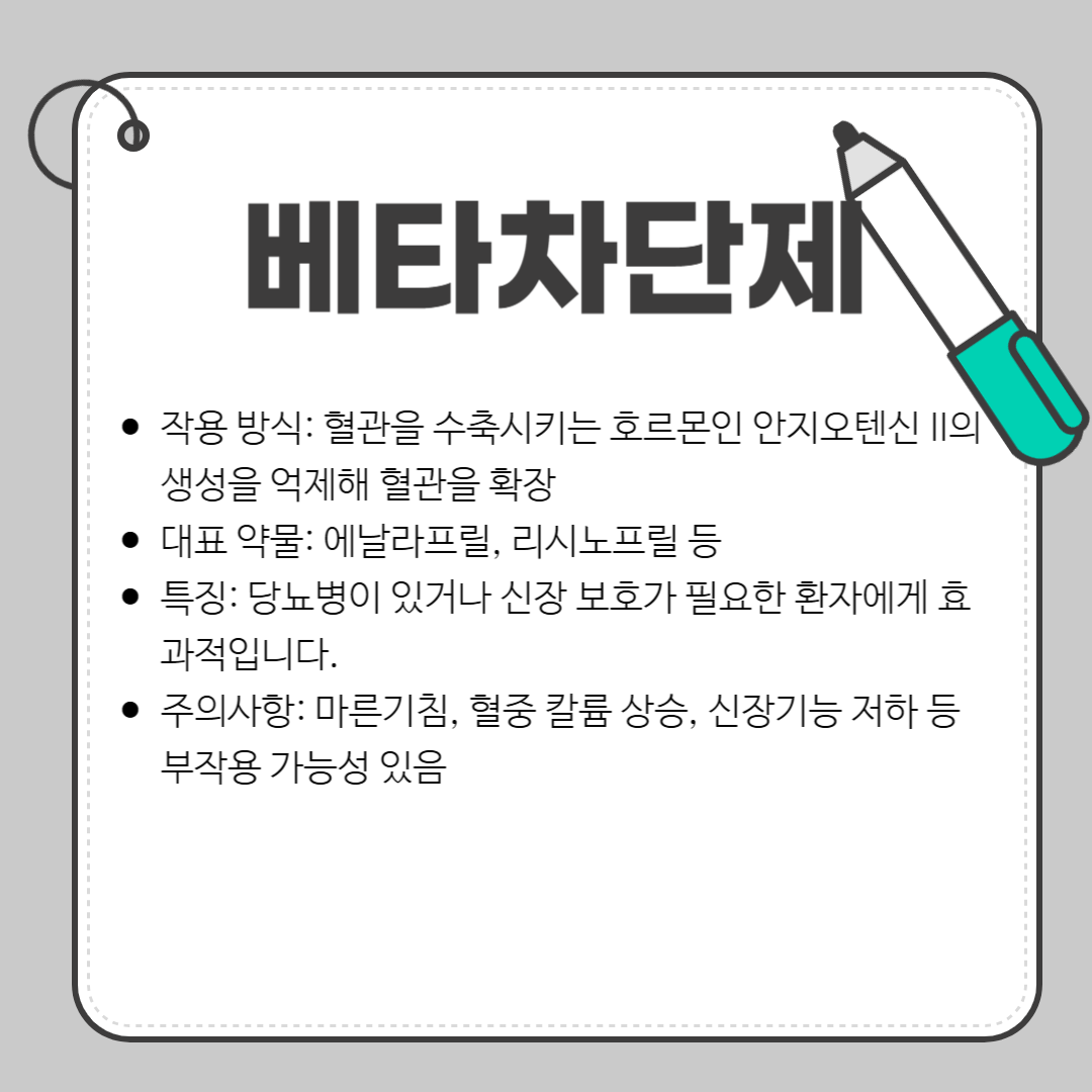 특징: ACE 억제제를 사용할 수 없는 환자에게 대체로 사용되며, 마른기침 발생 빈도가 낮습니다.